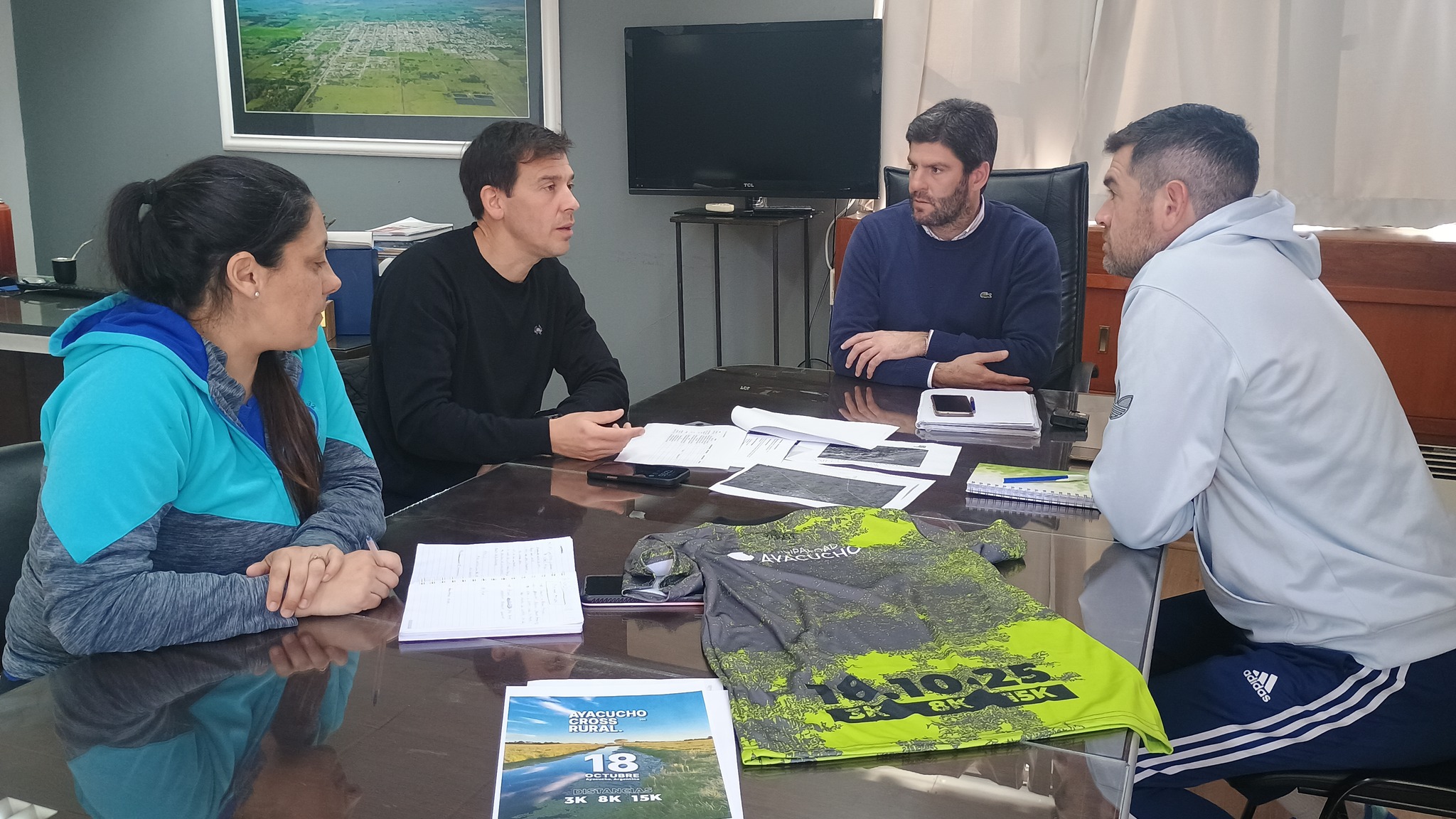 El Intendente Municipal Lic. Emilio Cordonnier, en compañía del Director de Deportes Prof. Juan Pablo Vicente, además de Emilio Quiroga en representación de Vibras Trail y Valeria Mutti Directora del CEF, se reunieron en el despacho para definir detalles organizativos del evento.